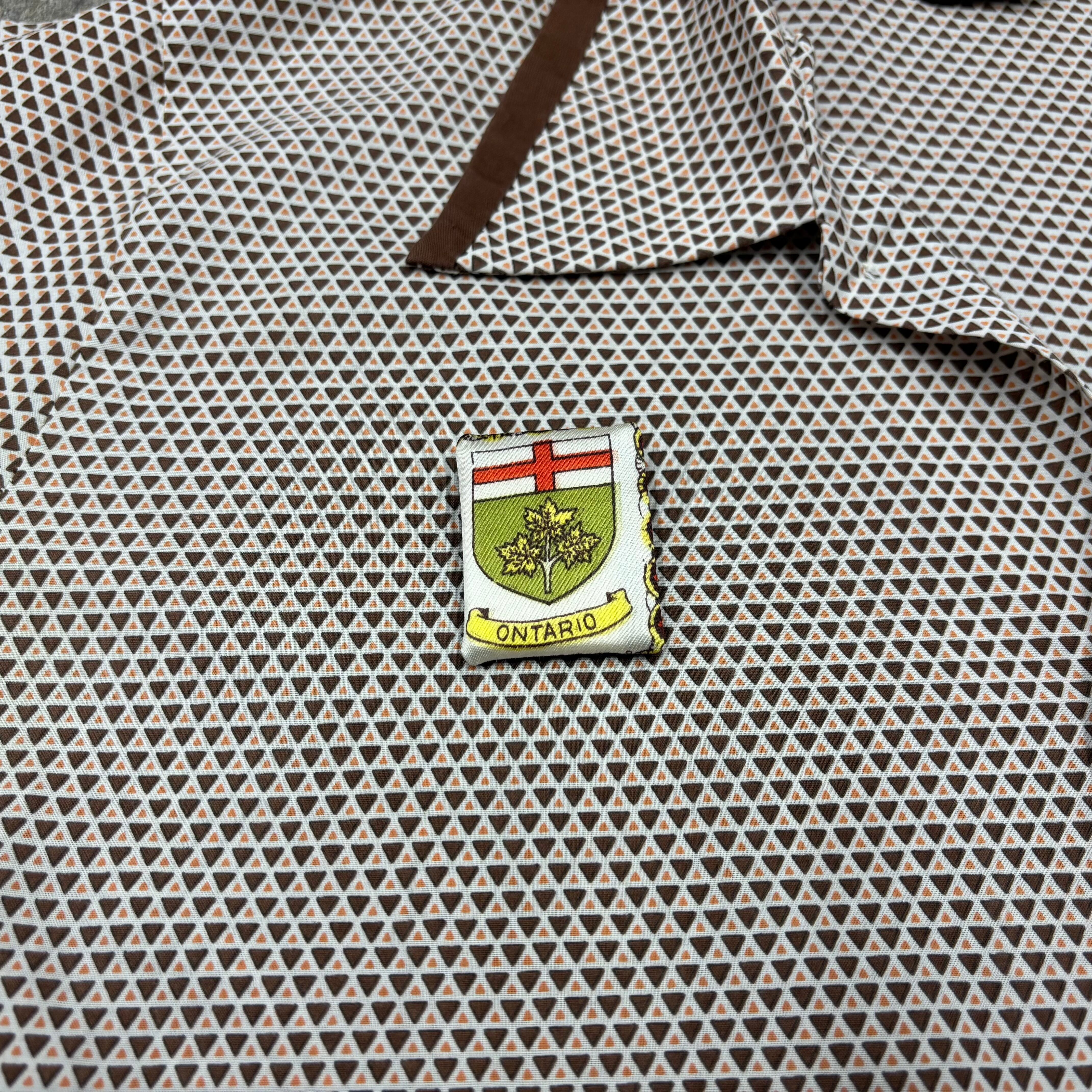素材タグしかついてないがこちらもザイデンステッカー製と思われる。おそらくホテルのアメニティかデパート向けに作られた紳士用パジャマ。襟の大きさとタグからみると1970年代後期。