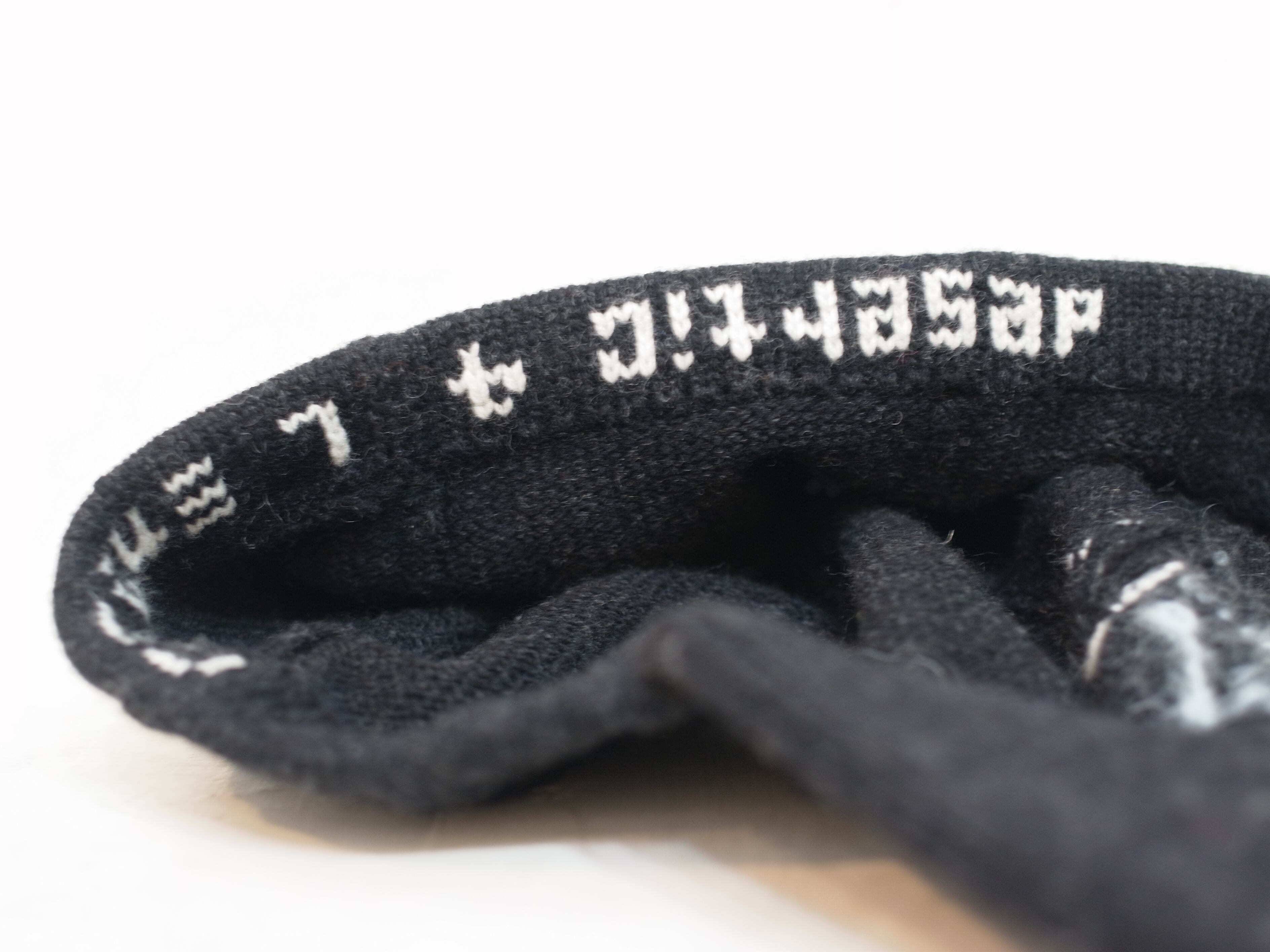 ニット製で収縮します。頭囲にゴムが入っているので、M〜L位の着用感です。