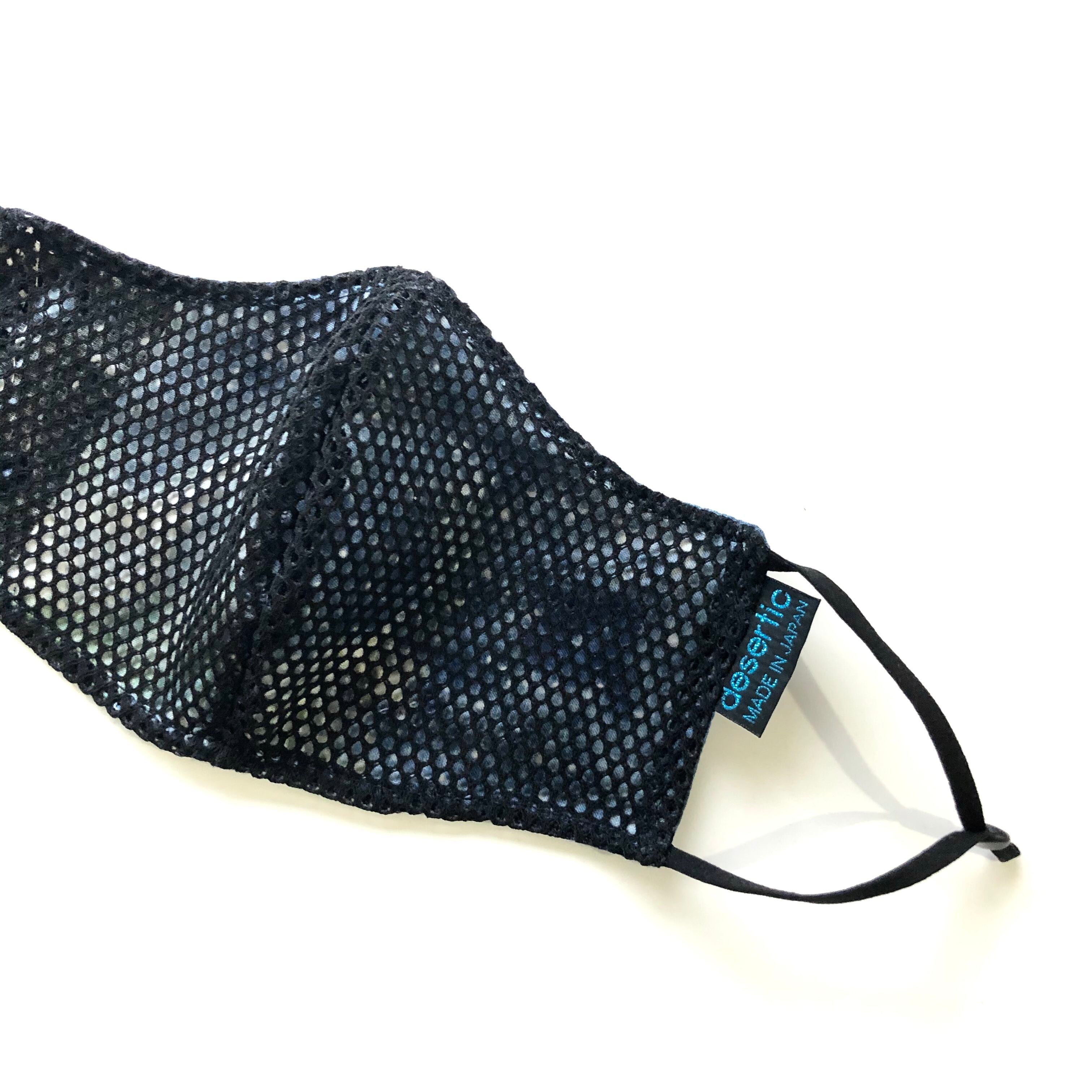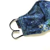 オリジナル銀河プリント生地(綿100%)と上質なメッシュのレイヤーマスク。耳触りの良いゴム紐はサイズ調整可能です。サイズスペックは最後の写真に記してあります。色柄は一点物となります。